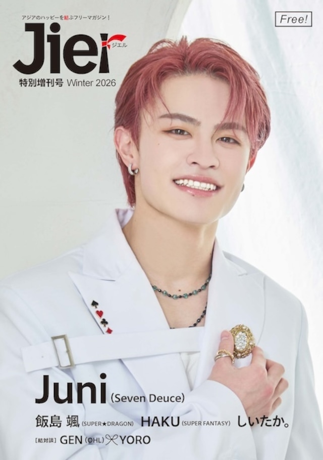 Jier 2026 Winter 特別増刊号 A5版 オールカラー 44P 数に限りがありますため、 お取り寄せの「一般」お申し込みもお一人様1回とさせていただきます。 こちらは本誌のみのお申し込みとなります。 【CONTENTS】 >インタビュー 9P #Juni (Seven Deuce) >インタビュー 9P #飯島颯 (SUPER★DRAGON) >インタビュー 6P #HAKU (SUPER FANTASY) >インタビュー 6P #しいたか。 >結対談 第5回 9P #GEN(OHL) × #YORO 詳細▷https://jier.official.ec/blog/2026/02/11/114500 ▶︎お申し込み前にご覧ください <ご注意> お申し込みは1回につき 合計4冊まで可能です。(ポストカード付2冊、本誌のみ2冊まで、) ※お申し込み内容の変更ができませんため、間違いのないようお申し込みください。 ※発送後のキャンセルはできかねます。 ※複数回お申し込みされた方はすべてのお申し込みがキャンセルとなります。 (本誌のみ、ポストカード付、また異なるポストカードも1度にお申し込みいただけます) ※領収書の発行は行っておりません。 購入時に届く「ご購入いただきありがとうございました」メールと、決済方法ごとの受領書などをあわせて領収書の代わりとしてご利用ください。 ※Jierの表紙、誌面、ポストカード画像のSNS等への転写、転載はできません。